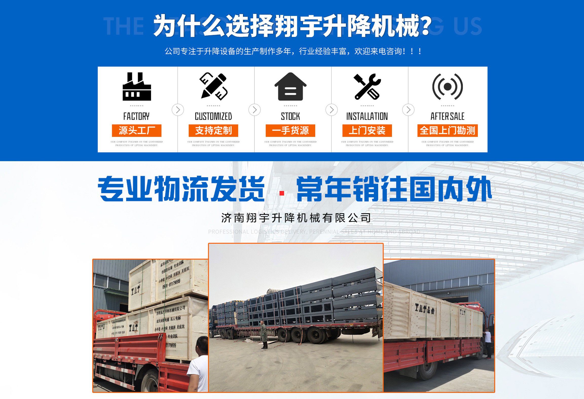 濟南翔宇升降機械有限公司一直致力于升降平臺的生產,致力于升降機,升降臺,家用升降機,家用電梯,導軌貨梯,平板車,平板拖車,傳菜機的生產與研發!本廠生產設備力量完善,工藝流程合理。產品選用意大利、德國液壓泵站系統,意大利液壓系統液壓自鎖裝置。具有設計新穎、結構合理、升降平衡、操作簡單、維修方便等的優點。 用于廠房維護、工業安裝、設備檢修物業管理、倉庫、航空、機場、港口、車站、機械、化工、電子、電力等高空設備安裝和檢修。本公司的產品共有八大系列六十多個品種,公司產品符合國家行業標準。產品性能達到水平,同時我們可以為用戶定做高噸位升降貨梯,固定式升降平臺、定制外型、尺寸的升降平臺及停車設備。 質量和服務,在我們看來不只是一個經濟指標,也是一個人文指標,致力于產品質量、價值及服務特色,使我們同客戶之間建立的良好關系得以發展,市場充滿競爭,但講究真誠與合作是發展的前提,當問題出現時,我們以真誠、合作的心態,以期盼公正合理的協商解決,堅持質量和服務,真誠合作,使我們獲得了成就,獲得了聲譽?! 靶抛u”作為中國企業走向世界的準入證,是市場經濟的命脈。一直以來,“信譽”代表了我公司的市場名譽,得到了客戶的認同,售后服務源于企業,我公司以“品質為本,服務至上”作為企業宗旨。只要你訂購了我公司的產品,無論...
